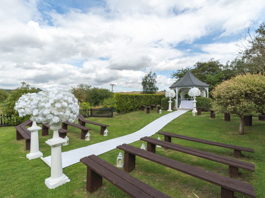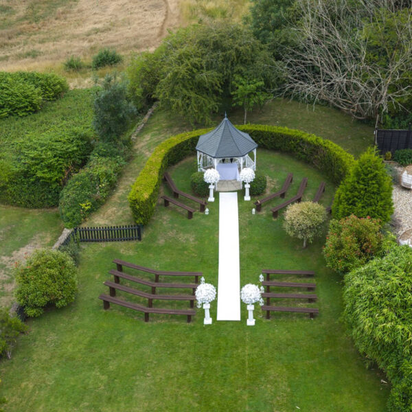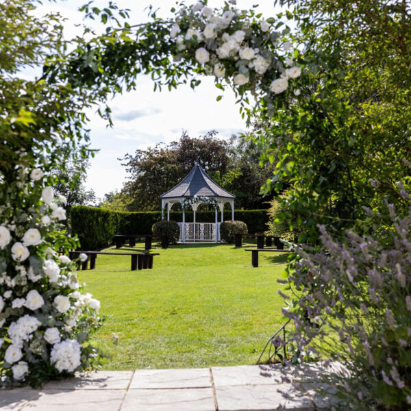 The Garden Gazebo is a weather-dependent ceremony area, which is something to keep in mind when making your decision. However, please don’t let this discourage you from choosing it, as it is a beautiful and popular setting for your ceremony. If the weather isn’t on our side on the day, we can seamlessly move your ceremony to either our Water Terrace Ceremony Area or the Wisteria Room, ensuring everything runs smoothly.