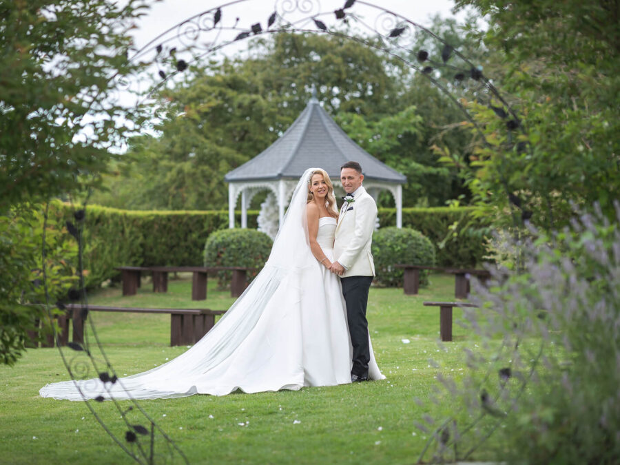 The Garden Gazebo sits just beside the Oak Lodge and is the closest ceremony spot to your getting-ready room, making it a perfect choice for a relaxed summer wedding. Don’t worry about your dress being revealed beforehand – no guests can see into the Oak Lodge garden area. So you will get that moment when you reach the moongate and everyone sees you at the same time.