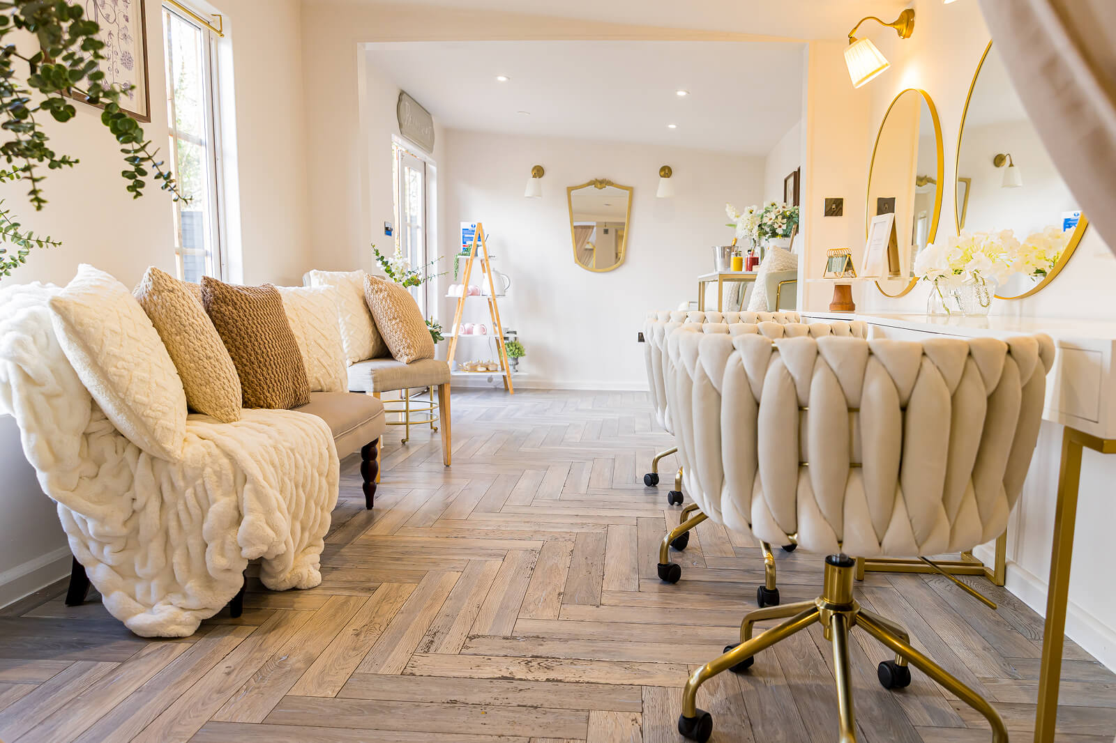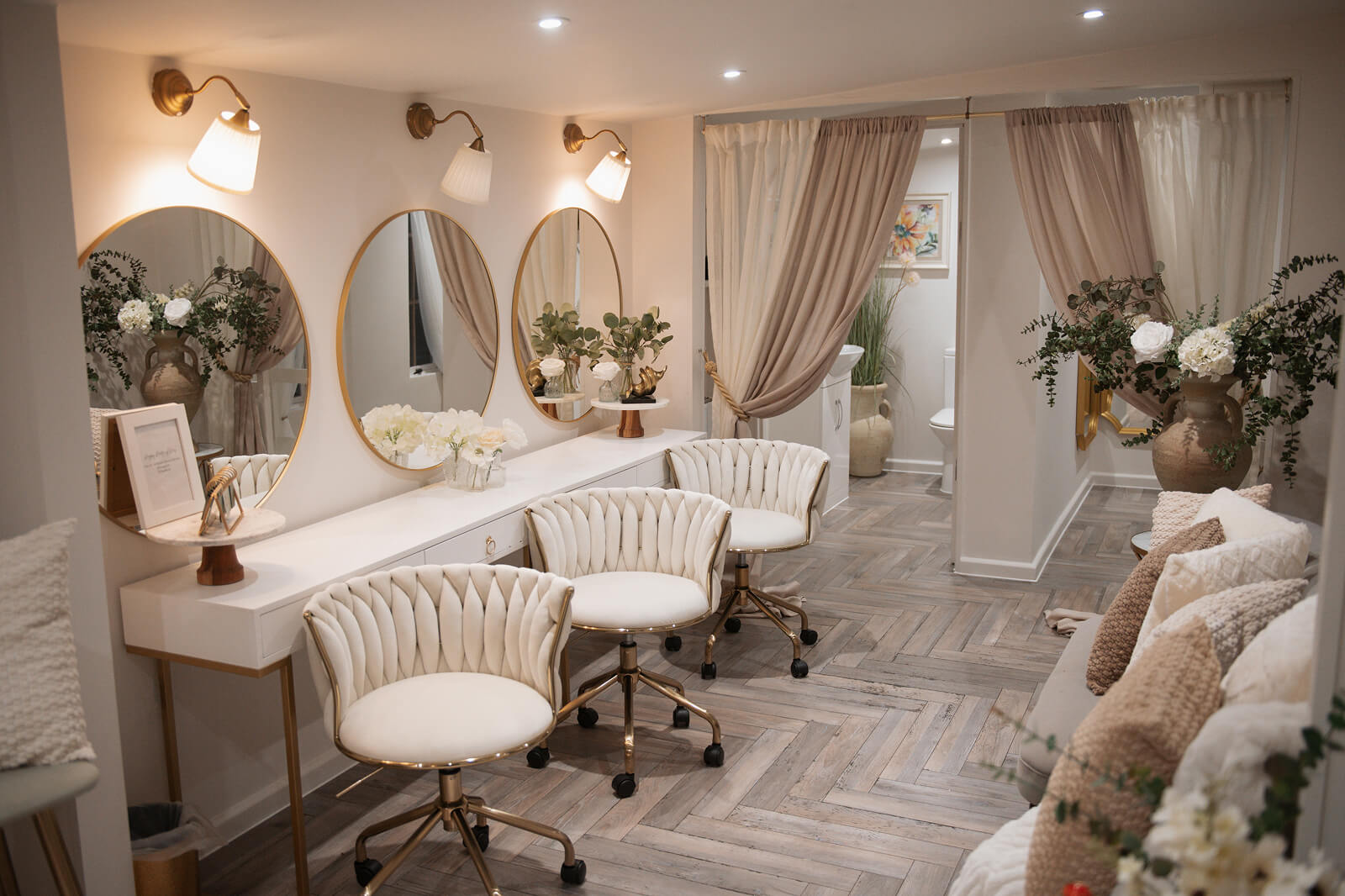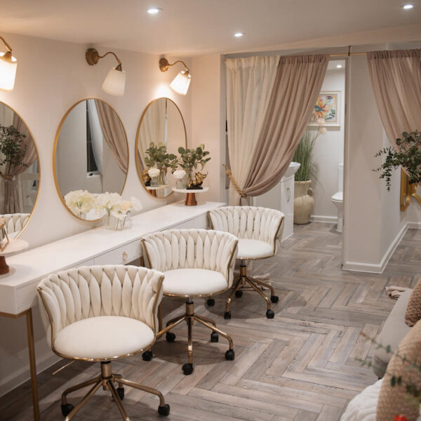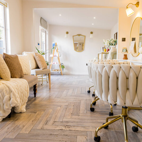 Inside, The Oak Lodge is beautifully styled with thoughtful details throughout, offering plenty of room for you, your bridal party, and your hair and makeup team to settle in comfortably. Soft seating, warm lighting and wonderful natural light create a relaxed atmosphere while you get ready.